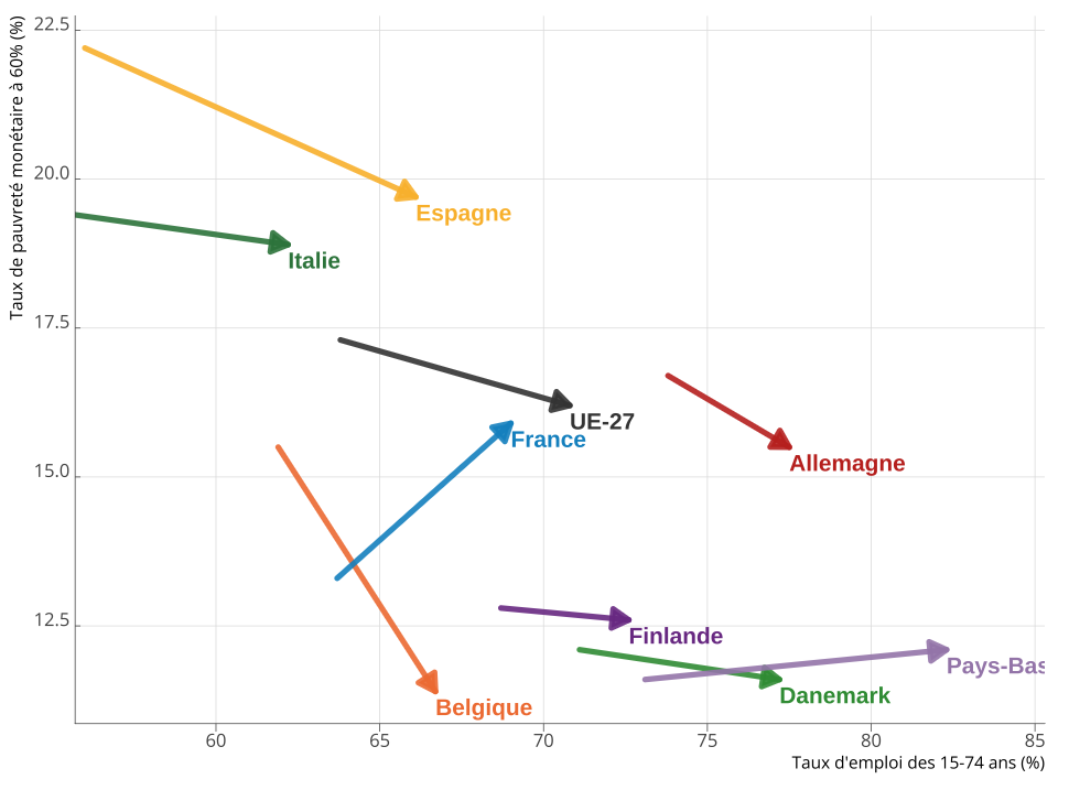 La France est depuis longtemps à la peine en matière d’emploi des jeunes. Les jeunes sont relativement peu nombreux à sortir prématurément du système scolaire, donc à entrer très tôt sur le marché du travail. Mais ceux-là rencontrent de fortes difficultés d’insertion, si bien que leur taux de chômage est très élevé, et cela pèse durablement sur leur trajectoire professionnelle.