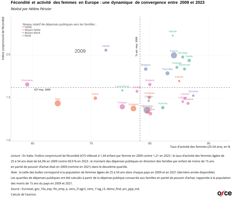 En quinze ans, la fécondité a reculé dans la majorité des pays européens, y compris dans ceux combinant forte activité des femmes et politiques familiales généreuses facilitant l’articulation entre vies familiale et professionnelle, ce qui suggère l’influence de facteurs plus profonds, comme l’a montré pour la France l’enquête du HCFEA auprès des 20-35 ans.