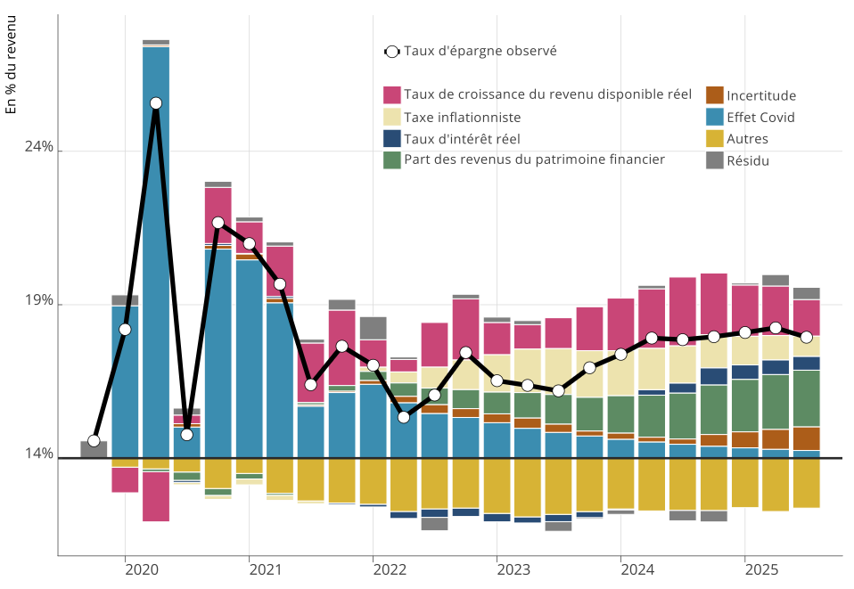Taux d’épargne : une hausse portée par les revenus du patrimoine financier, la taxe inflationniste et l’incertitude